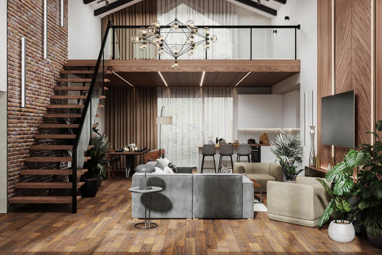 Экостиль – сочетание дерева и камня составляет основу дизайна в этом направлении.