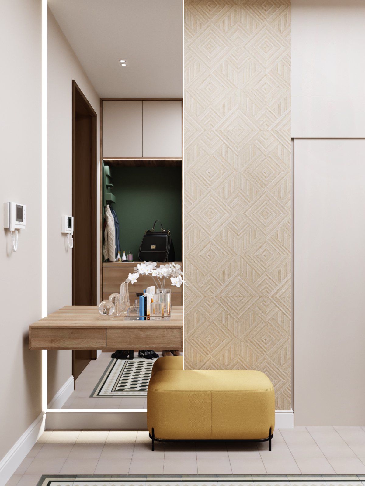 При разработке дизайна квартиры входной зоне желательно уделить такое же внимание, как и другим помещениям. В этом случае квадратные метры прихожей станут функциональным пространством, а не потерей полезной площади.