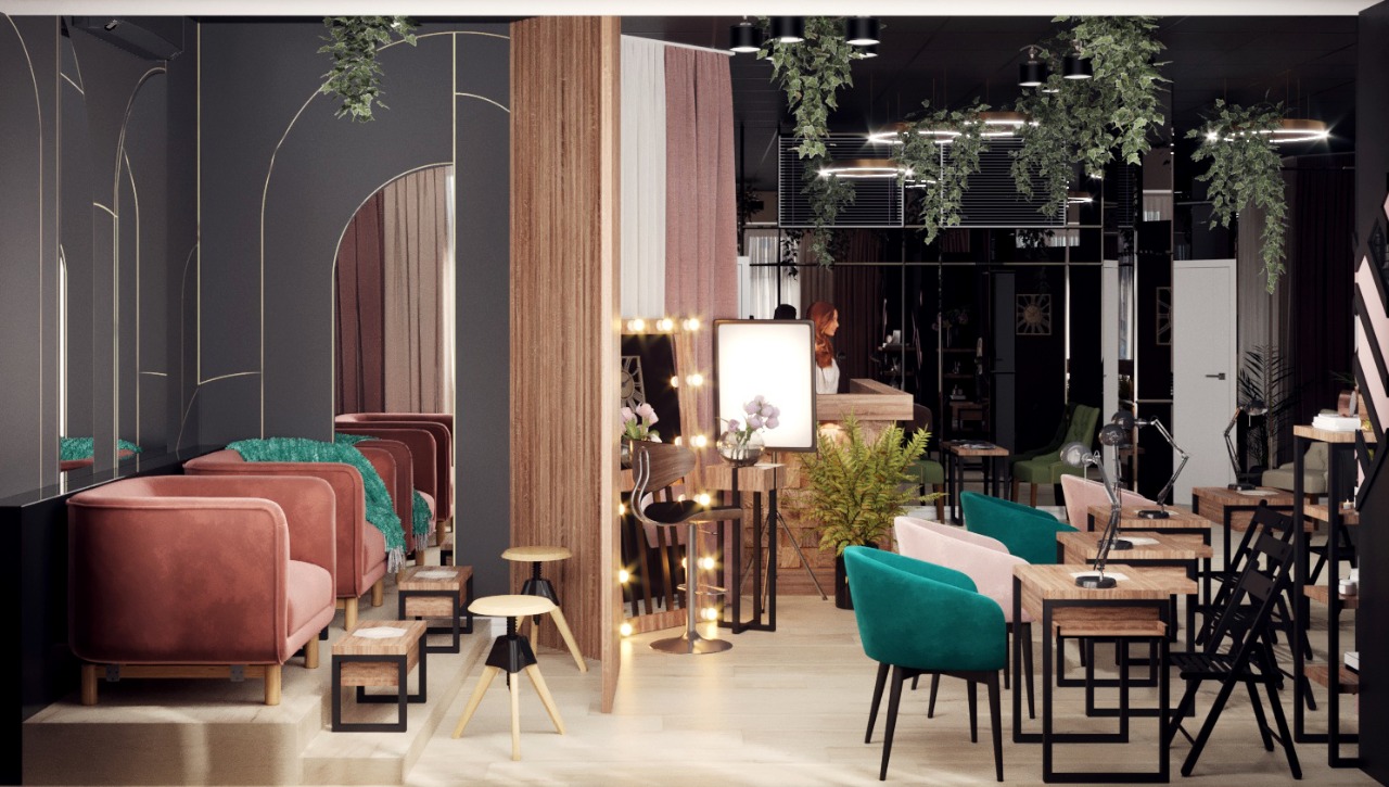 Дизайн-проект для студии красоты в Воронеже, выполненный в эко стиле.